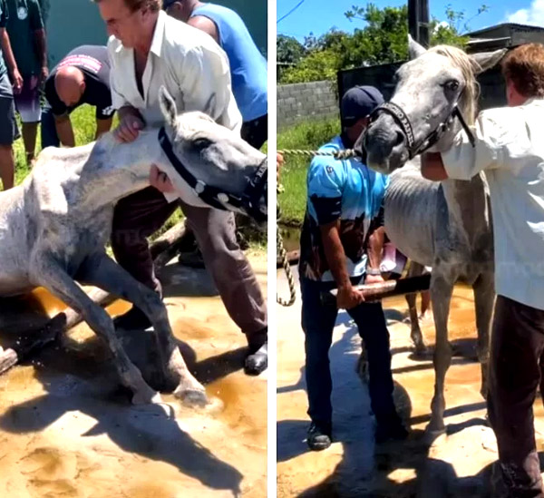 De acordo com o vereador Willian Ramos, que participou do resgate, o cavalo foi encontrado em estado de desnutrição e muito fraco.